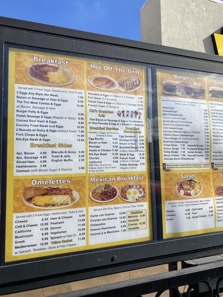 Yellow Basket is an American diner located in Carson, CA, offering a variety of breakfast, brunch, and burger options. This casual spot is wheelchair accessible, offers vegan options, and accepts credit cards. Customers rave about the quick service and delicious food, with favorites including the fish and chips basket, pork chops dinner, chicken salad, and bacon avocado cheeseburger. The generous portions and affordable prices make it a go-to spot for families and friends. The friendly staff, clean facilities, and fast service create a welcoming atmosphere for all diners. Whether you're stopping by for a hearty breakfast or a satisfying lunch, Yellow Basket is sure to leave you satisfied and coming back for more. Don't miss the zucchini fries, a crowd favorite for sharing!