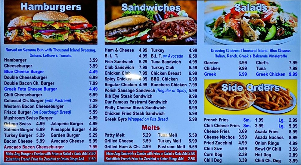 Served with fries salad dinner bread and soft drink.